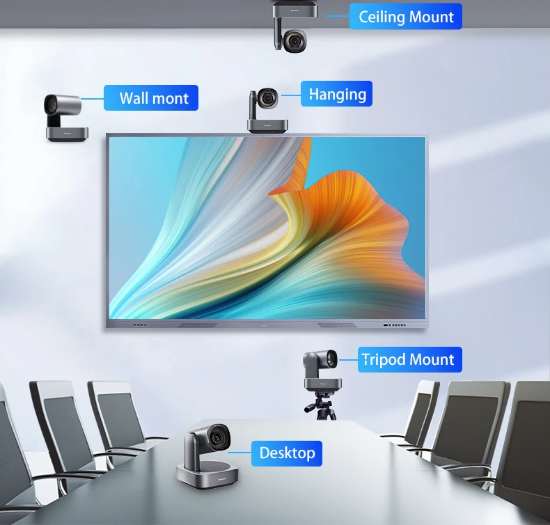 2, maksimālā jauda līdz 25 dalībniekiem: pagarināts 8 m. Audio diapazons un 88 grādu redzamības lauks vidējām līdz lielām grupām